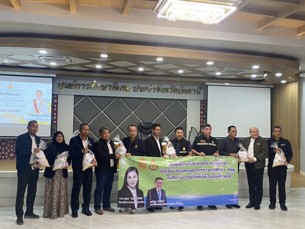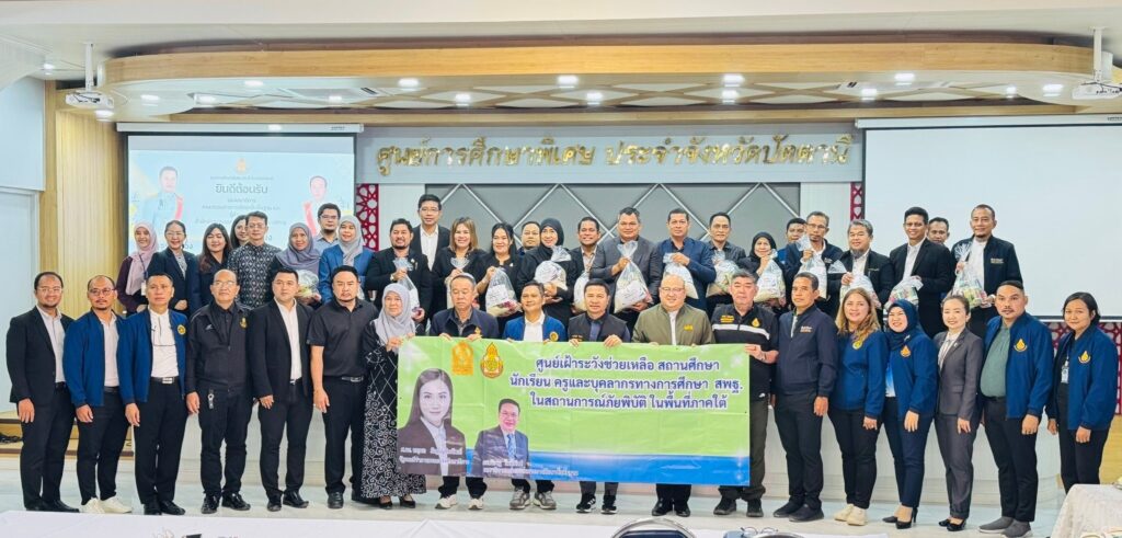 วันที่ 2-3 ธันวาคม 2568 นายพิเชฐร์ วันทอง รองเลขาธิการคณะกรรมการการศึกษาขั้นพื้นฐาน พร้อมด้วย นายศุภสิน ภูศรีโสม ผู้อำนวยการสำนักพัฒนาระบบบริหารงานบุคคลและนิติการ และนายสราวุธ เดชมณีรัตน์ ผู้เชี่ยวชาญด้านการศึกษาสำหรับผู้ด้อยโอกาส ปฏิบัติหน้าที่ผู้อำนวยการศูนย์พัฒนาการศึกษาเขตพัฒนาพิเศษเฉพาะกิจจังหวัดชายแดนภาคใต้ (ศพก.จชต.) สำนักอำนวยการ เข้าตรวจเยี่ยม ติดตามและให้กำลังใจนักเรียน ครูและบุคลากรทางการศึกษา ที่ประสบอุทกภัย ณ จังหวัดปัตตานีและจังหวัดยะลา โดยมีผู้บริหารการศึกษาในพื้นที่ร่วมคณะติดตาม